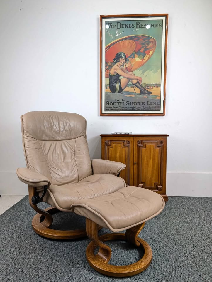 Ekornes Stressless Tan Leather Lounge Chair Recliner & Ottoman