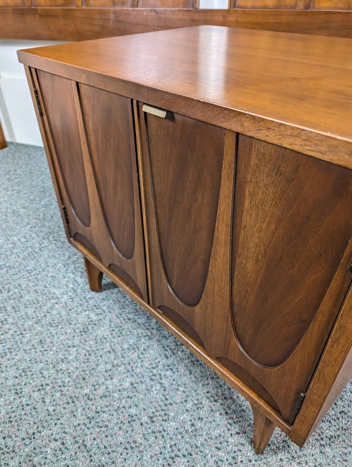 Stunning Broyhill Walnut Nightstand from the mid century modern iconic Brasilia Collection. This piece is in fantastic vintage original condition. King Headboard is also available for $1,595. Made in 🇺🇸 USA!