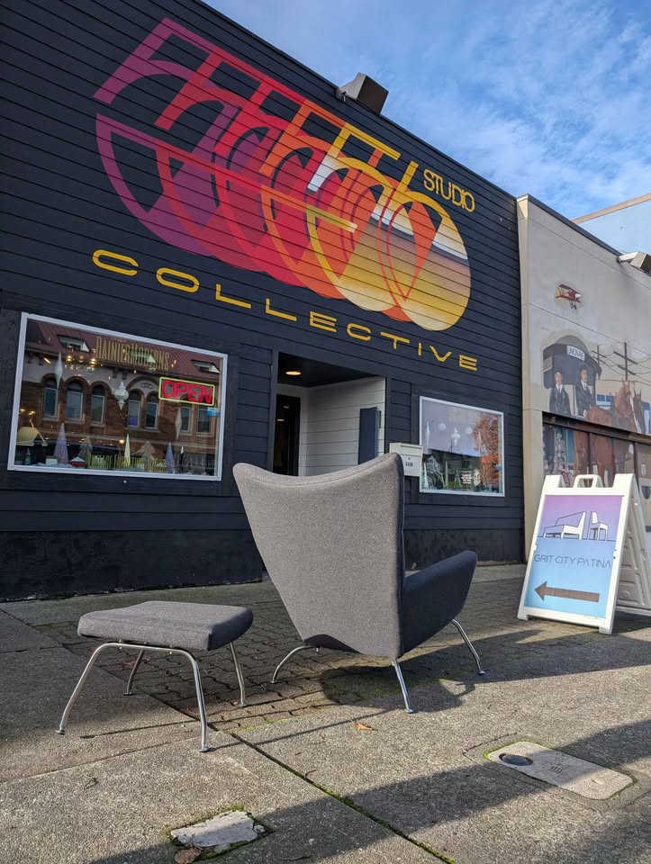 Gorgeous modern take on the wing lounge chair & matching ottoman attributed to the iconic Hans Wegner CH445 design for Carl Hanson & Sons. Come see it at our shop in South Tacoma.