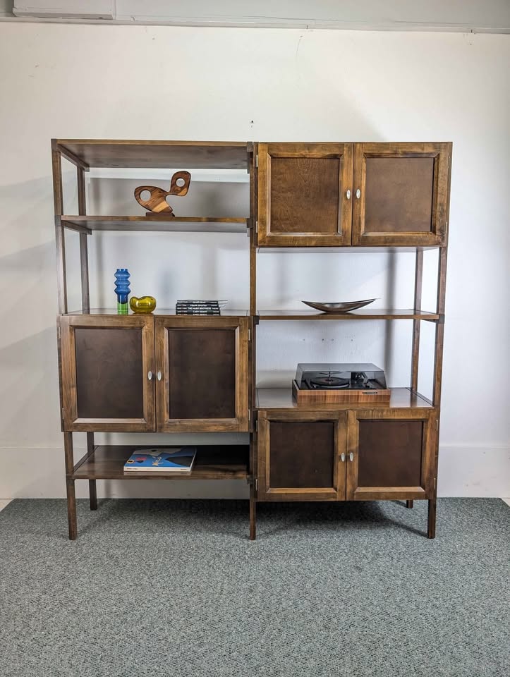 This is a stunner! Beautiful & flawless Danish Modern wall unit in original condition, acquired from the original owner. Features a modular design for a completely customizable setup & reversible doors! Come see it in the shop!