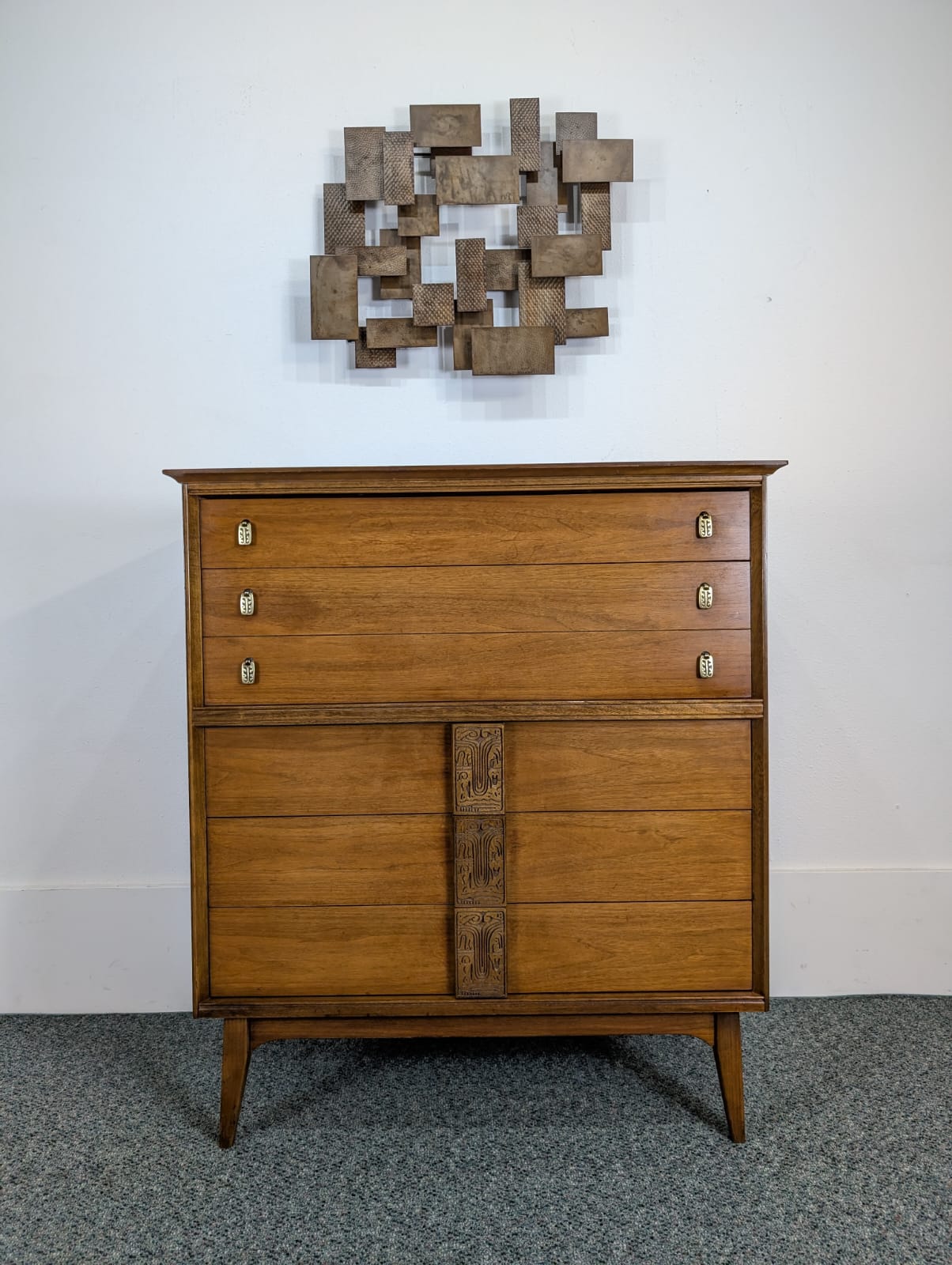 Mid Century Modern Bassett Mayan 6 Drawer Walnut Highboy