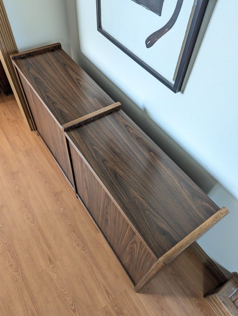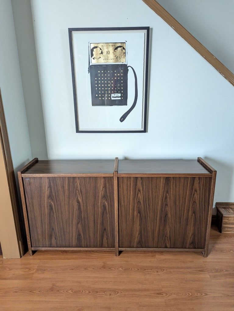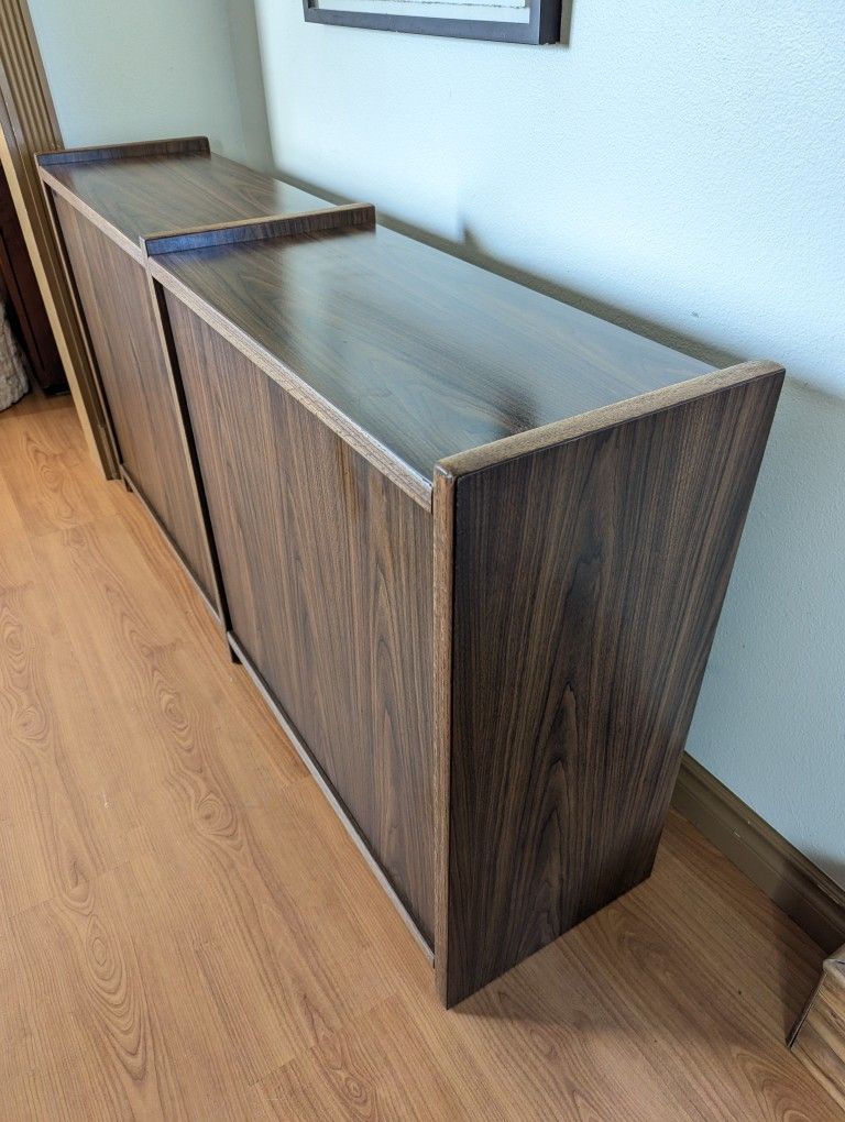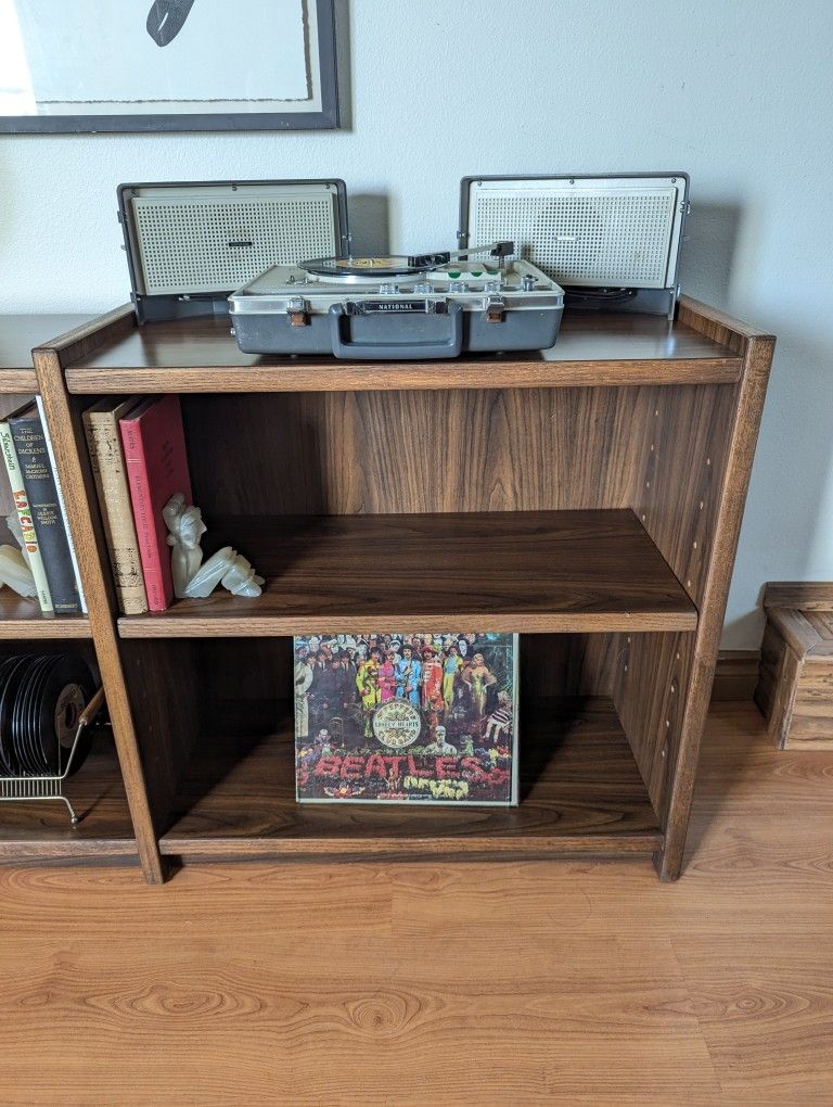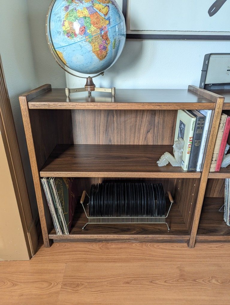 Mid Century Modern Walnut Double Bookshelf / Record Player Stand & Storage