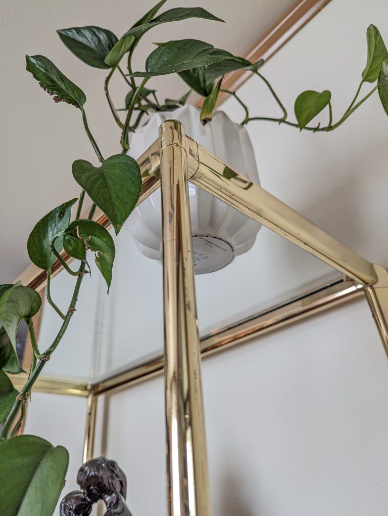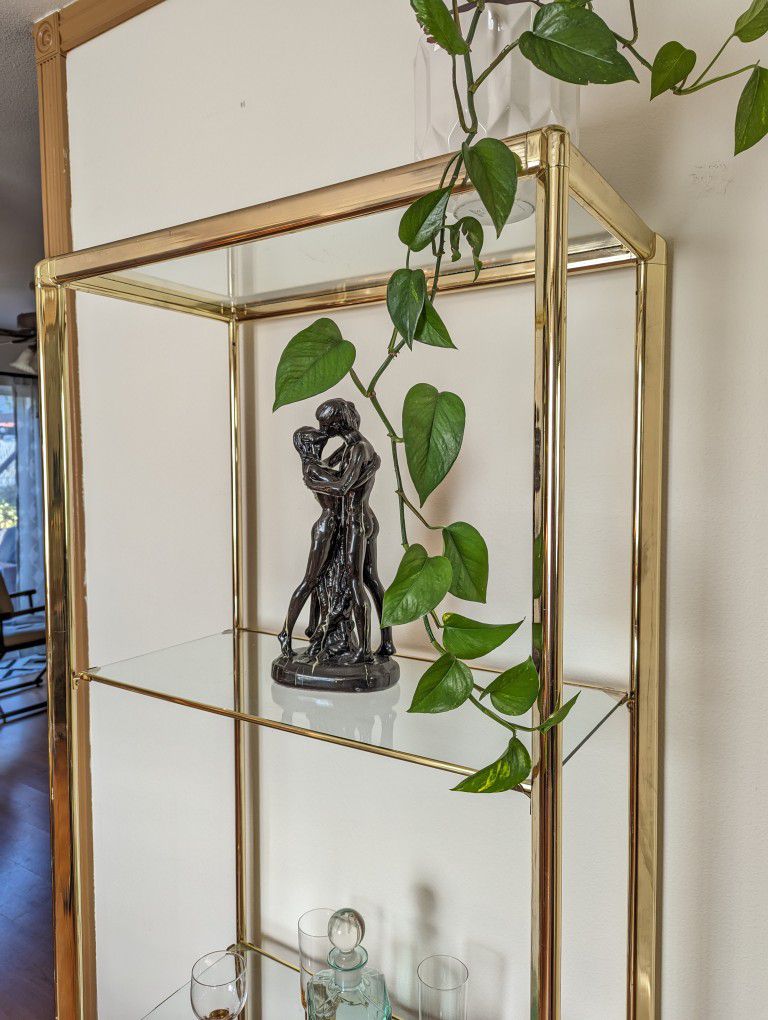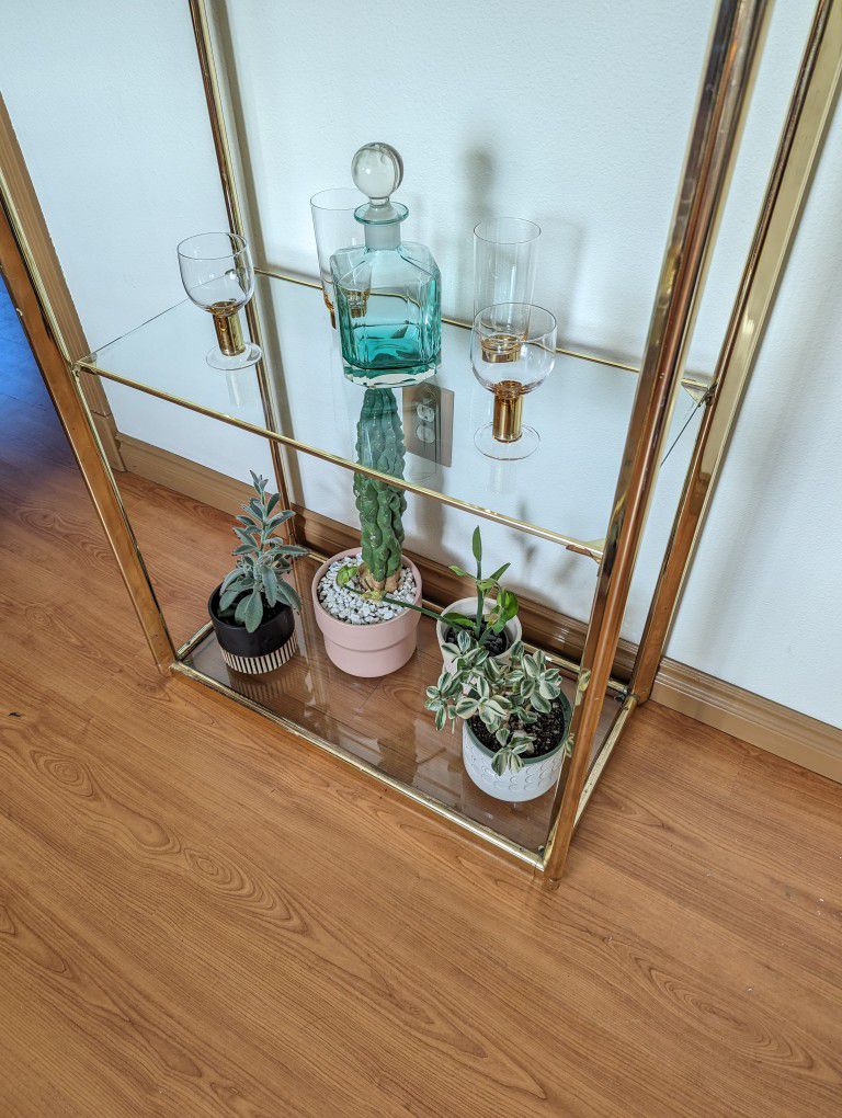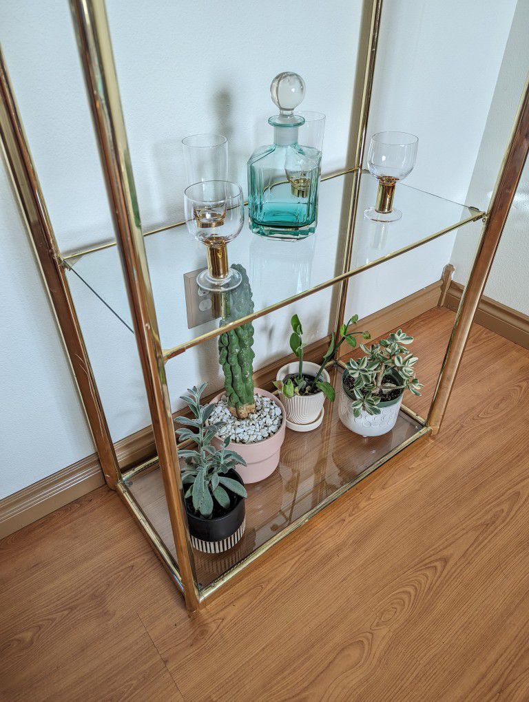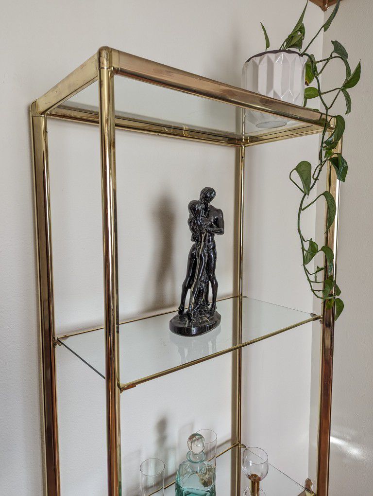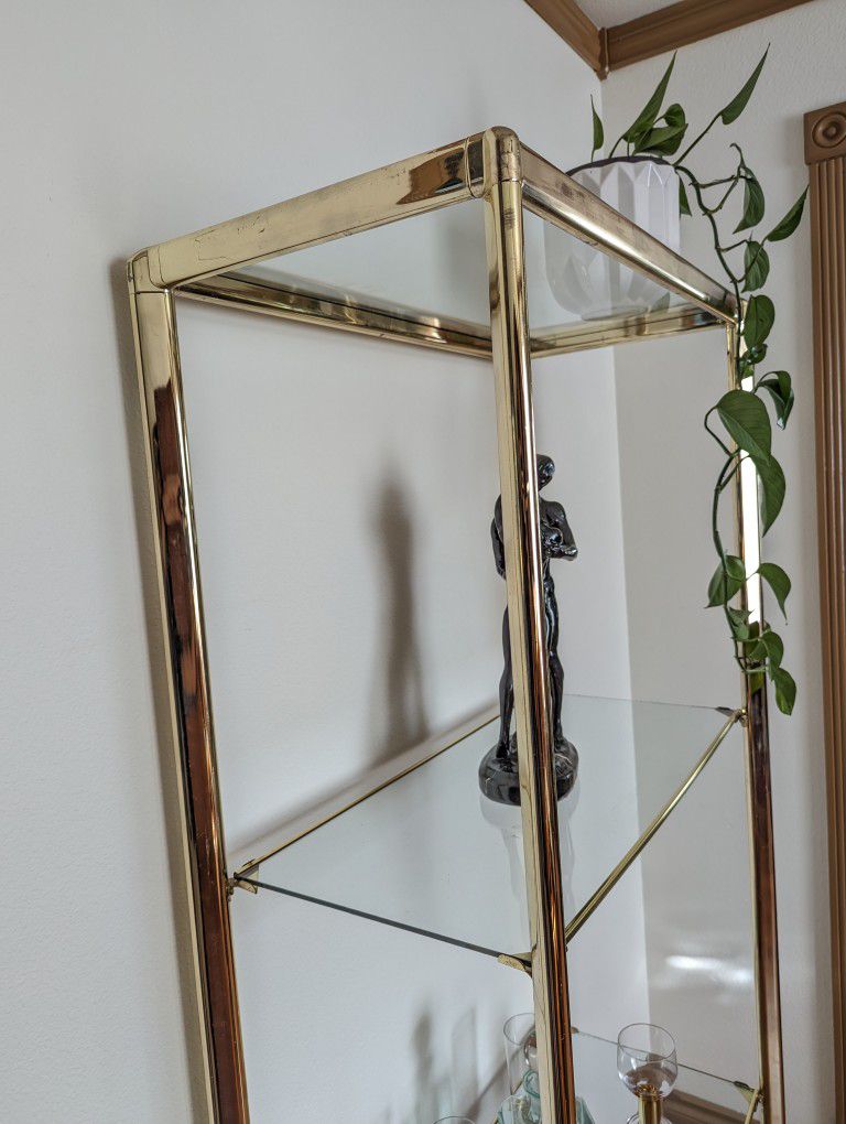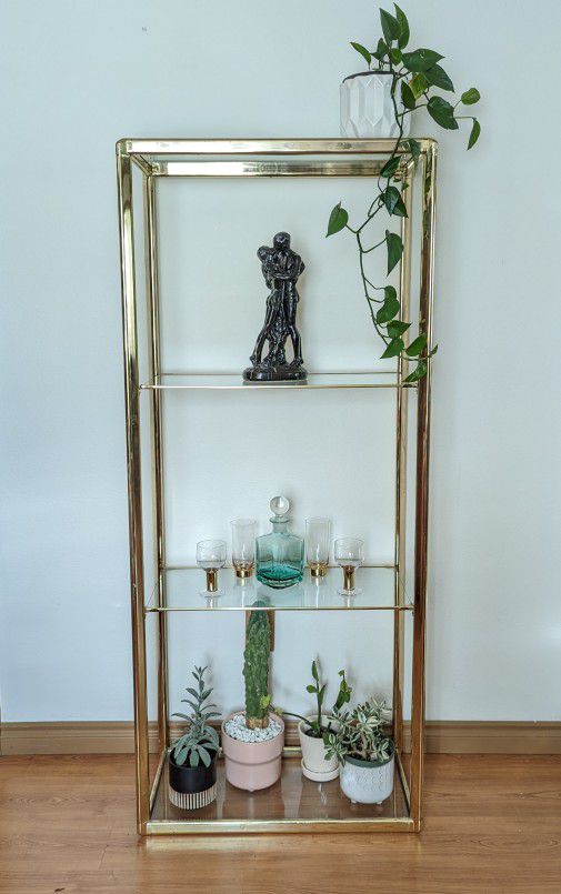 Mid Century Rectangular Brass Etagere Display w/ 4 Glass Shelves
