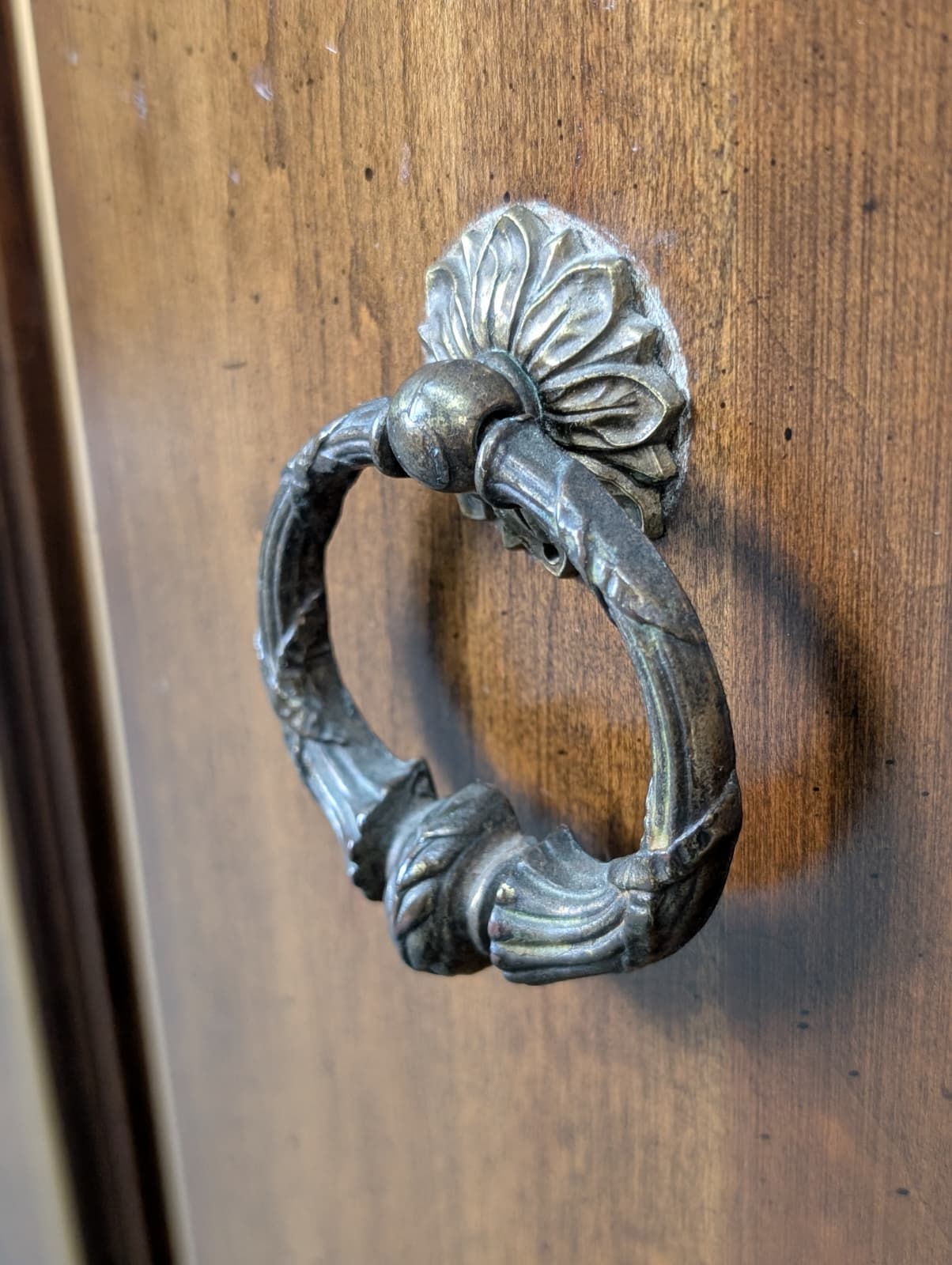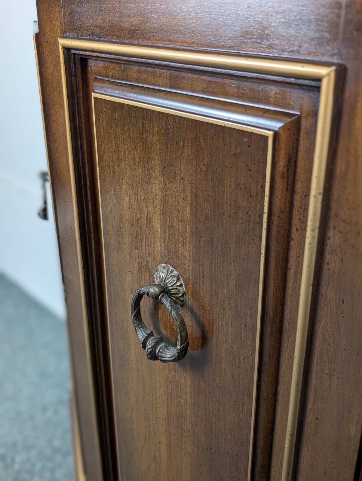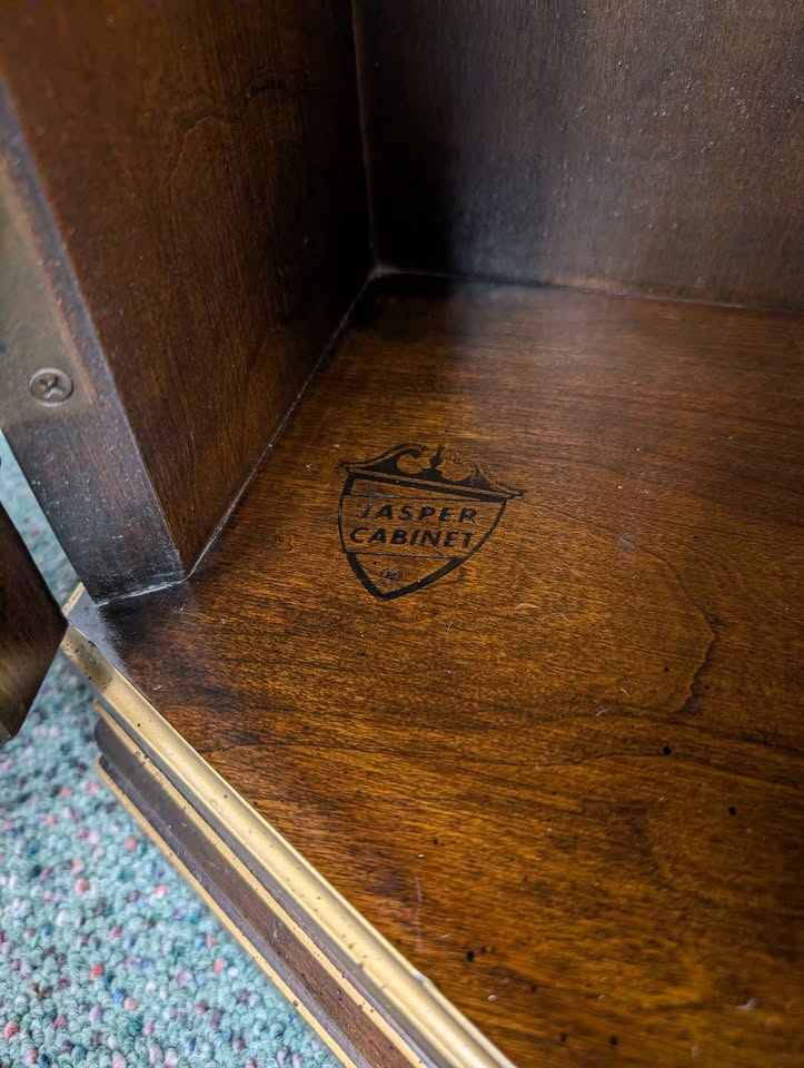Excellent entry cabinet by Jasper Cabinet Co. Features solid walnut wood construction, slim space saving design with Spanish revival accents. Great in an entryway, hallway or any tight space you need a little extra storage. Made in 🇺🇸 USA!Â