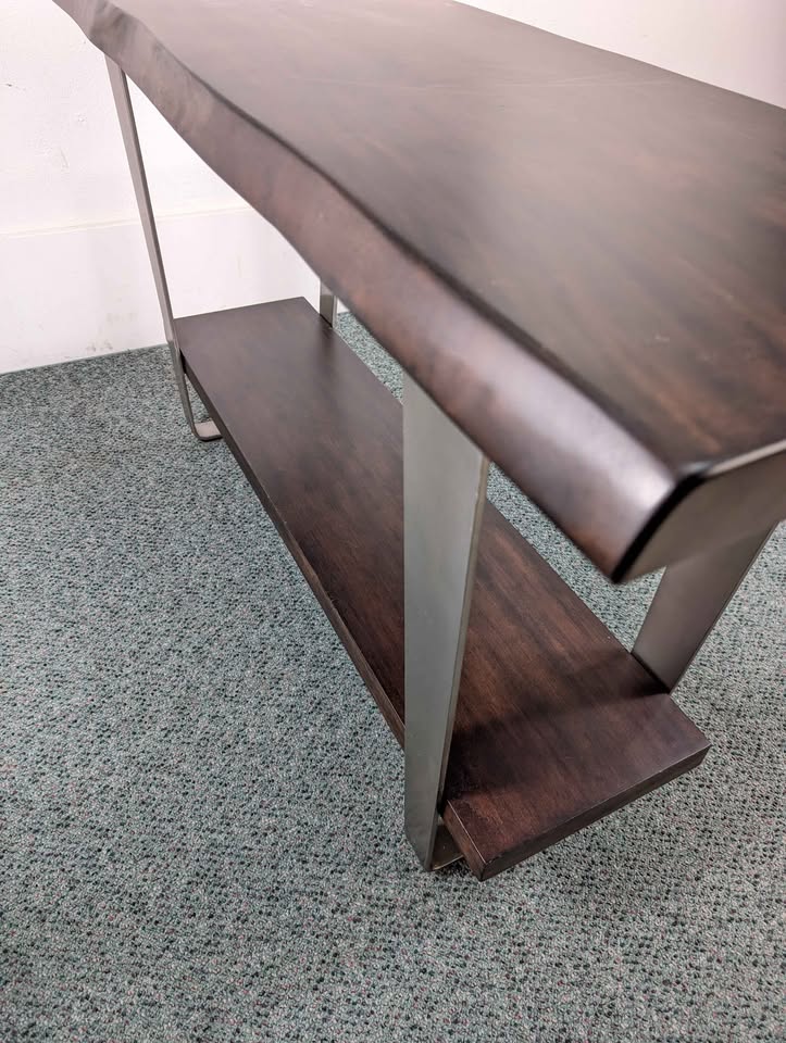 Modern 2 Tiered Live Edge Style Console Table w Steel Frame