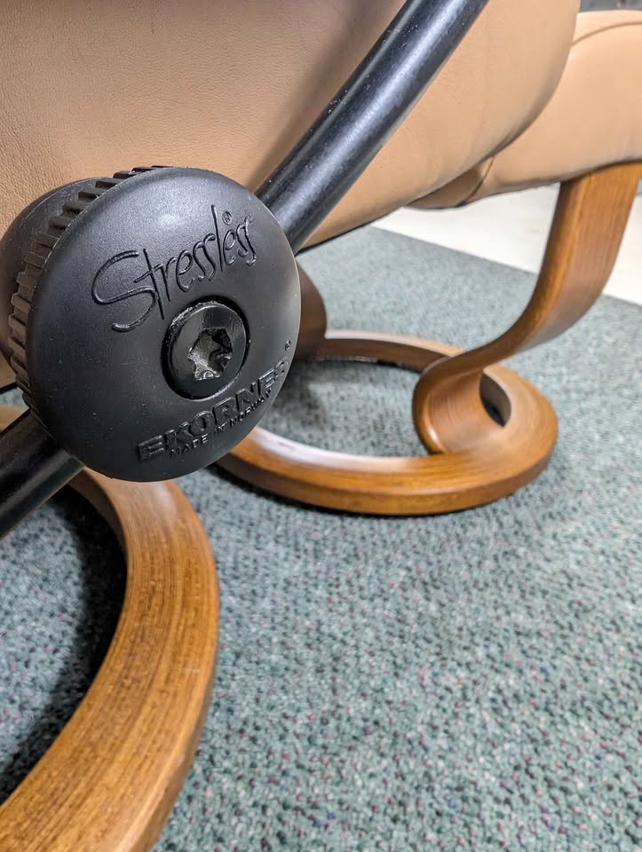 Nice pair of matching, large size, tan leather loungers by Ekornes on the classic bentwood teak bases. Made in 🇳🇴 Norway!