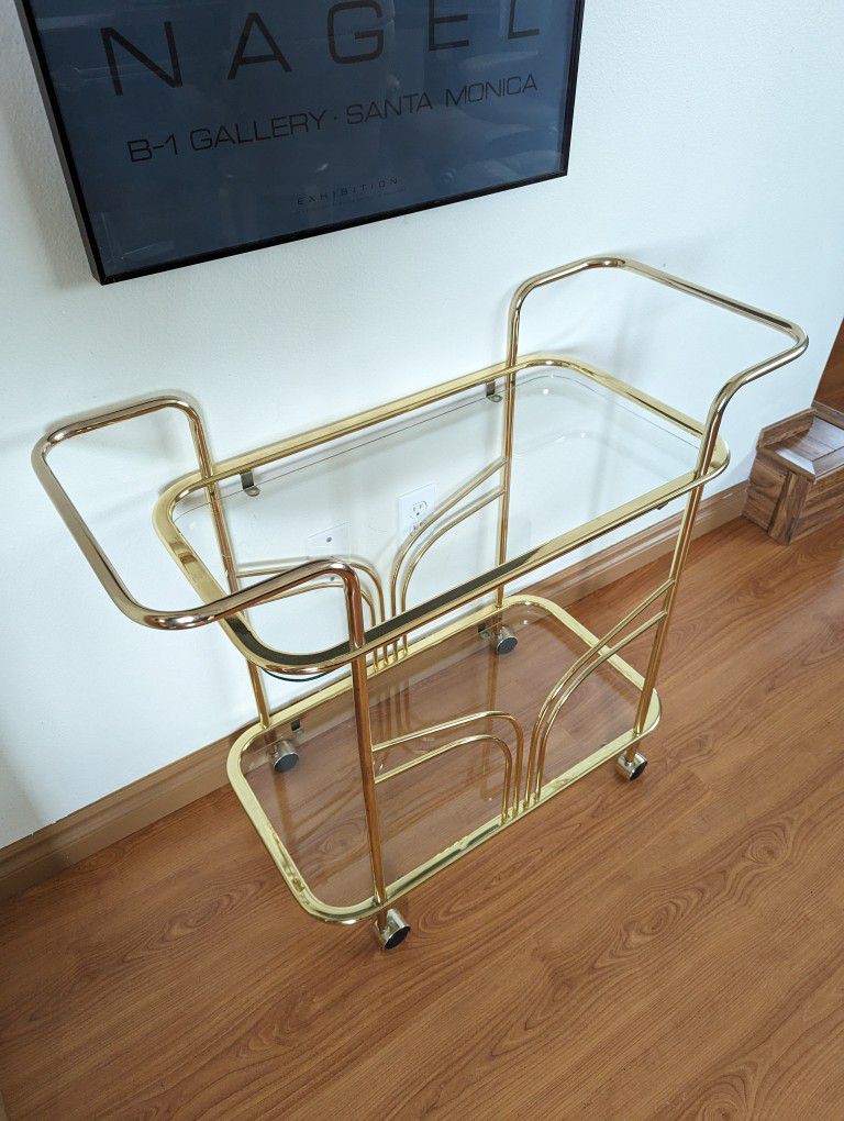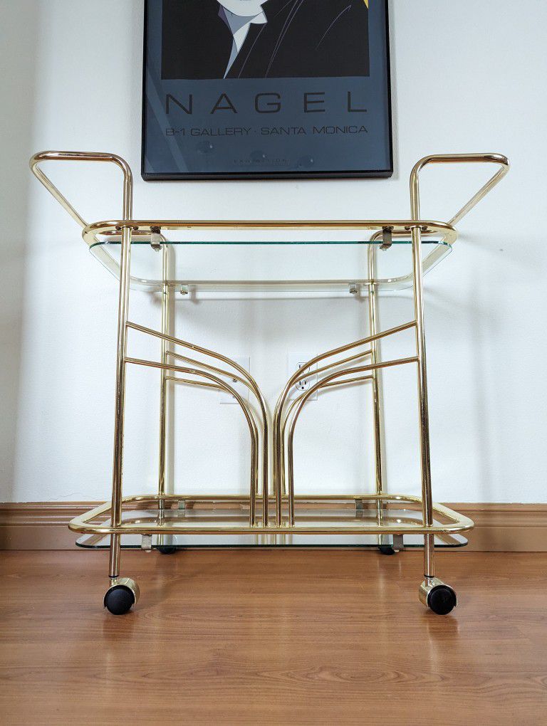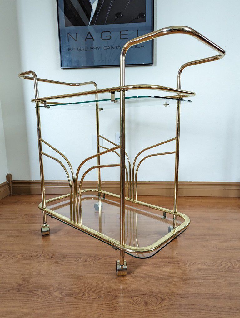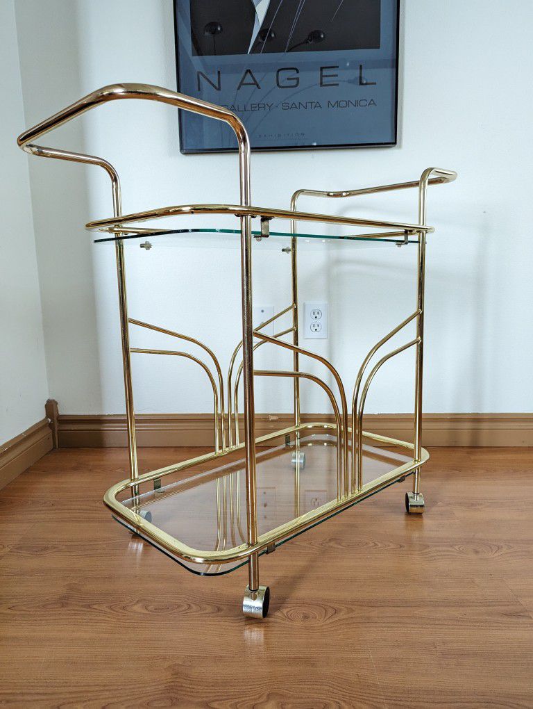 Postmodern Vintage Hollywood Regency Brass & Glass Bar Cart