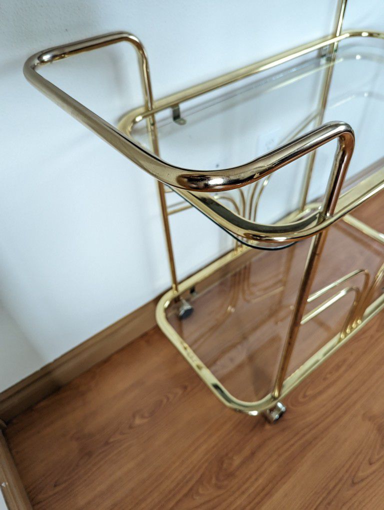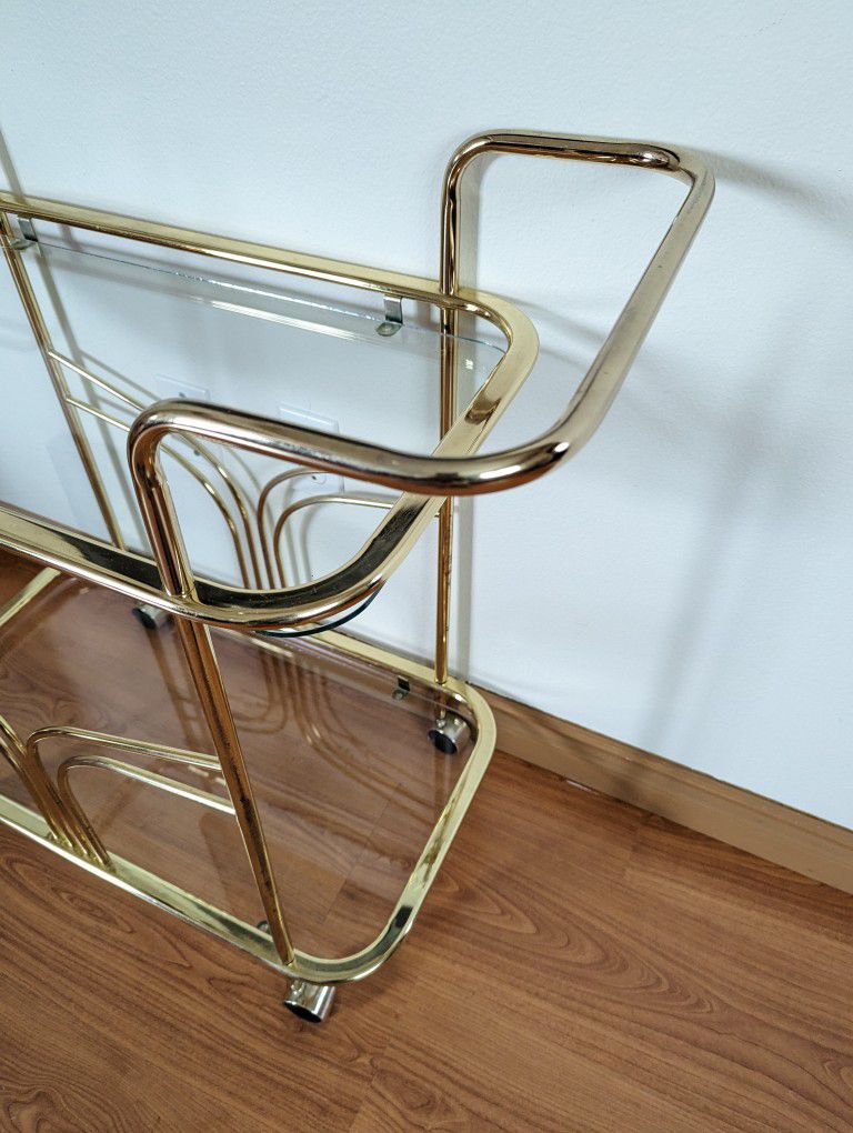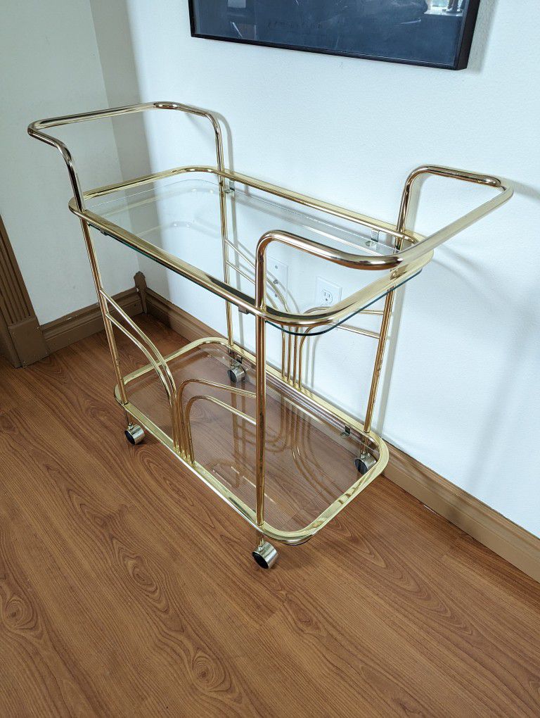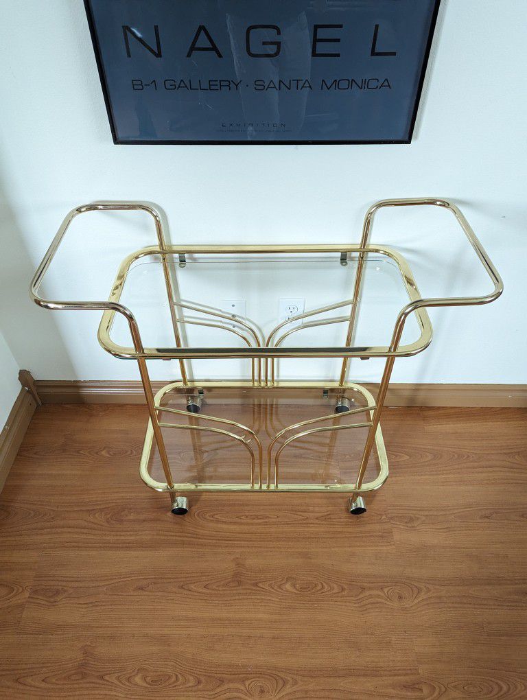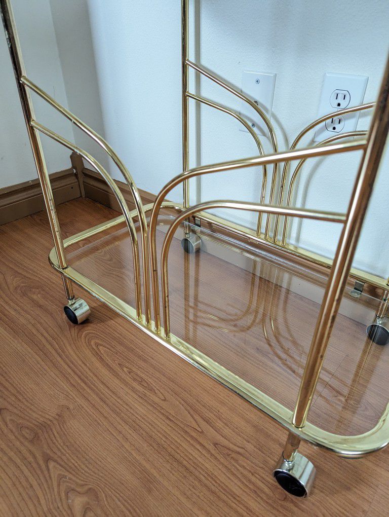 Postmodern Vintage Hollywood Regency Brass & Glass Bar Cart