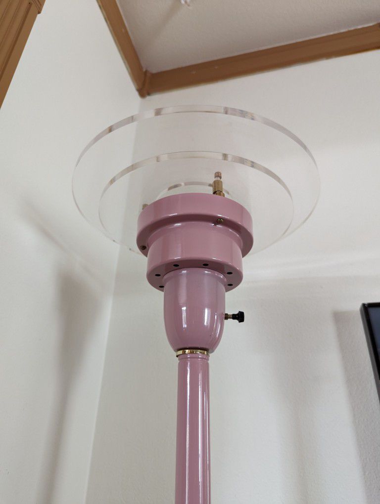 Postmodern Vintage Pink & Lucite Memphis Saucer Floor Lamp
