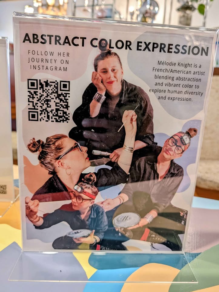 Hand painted, statement piece by French - American artist Mélodie Knight. This stunning work of art is multifunctional, serving as a record player stand and vinyl storage / coffee table or bench.