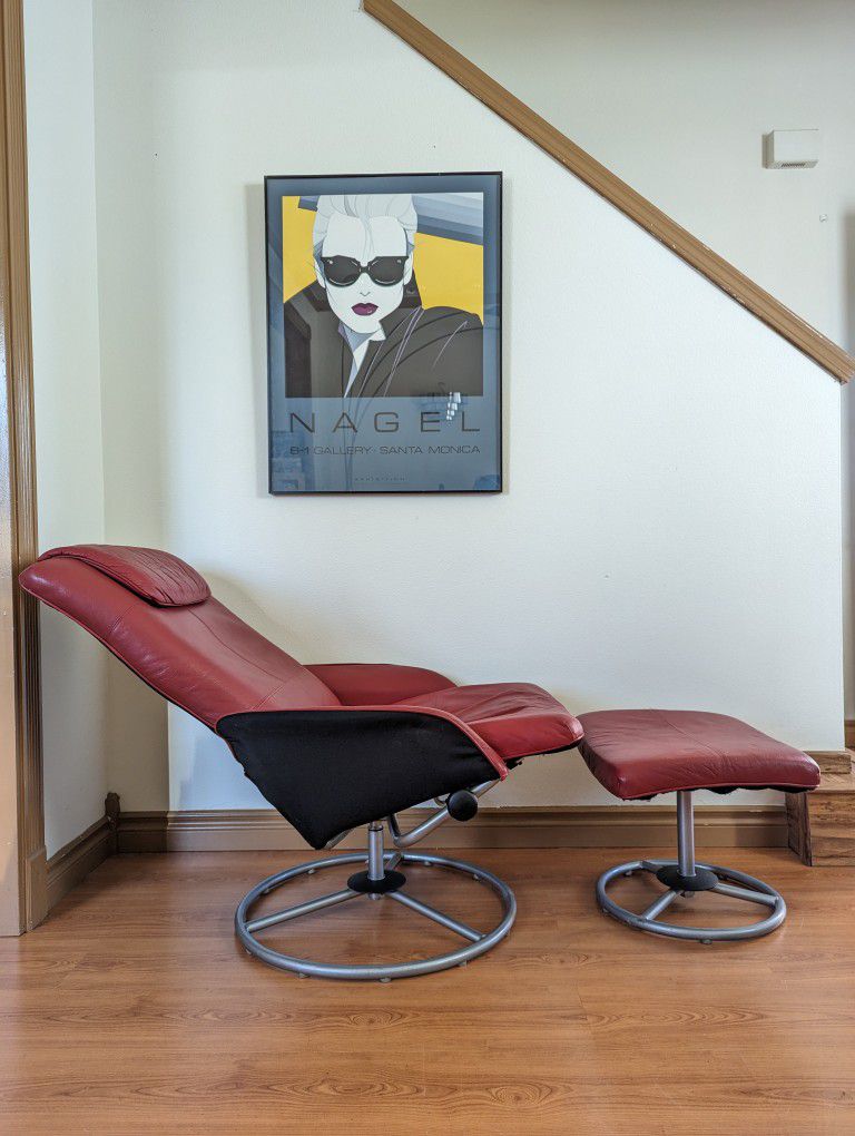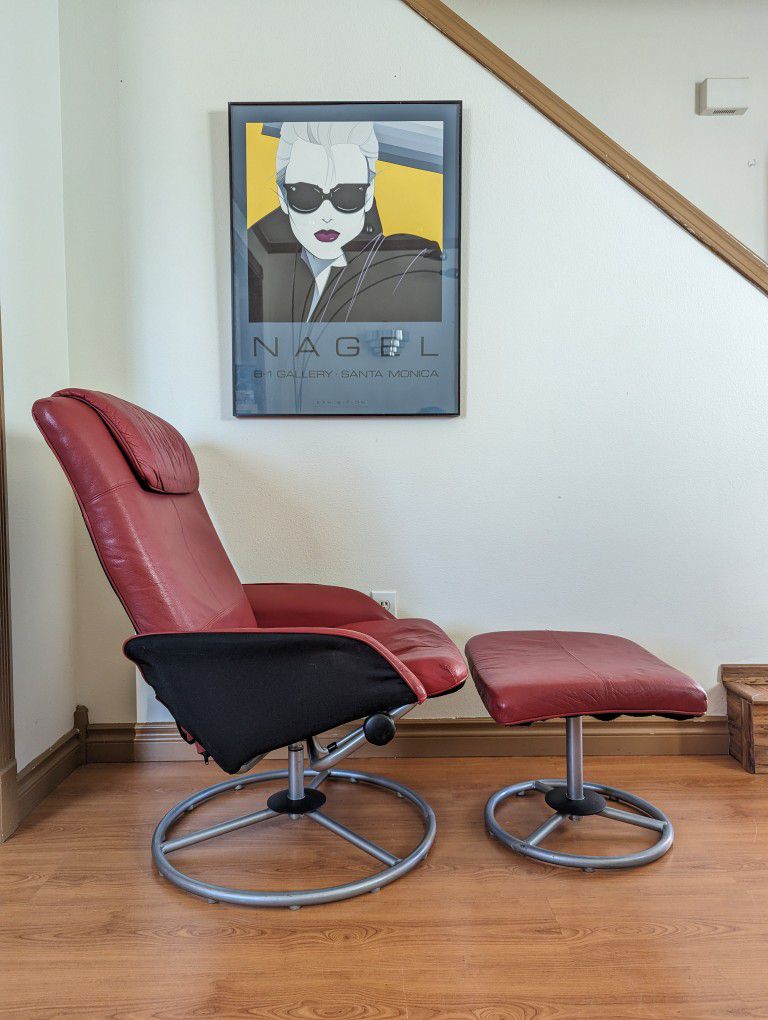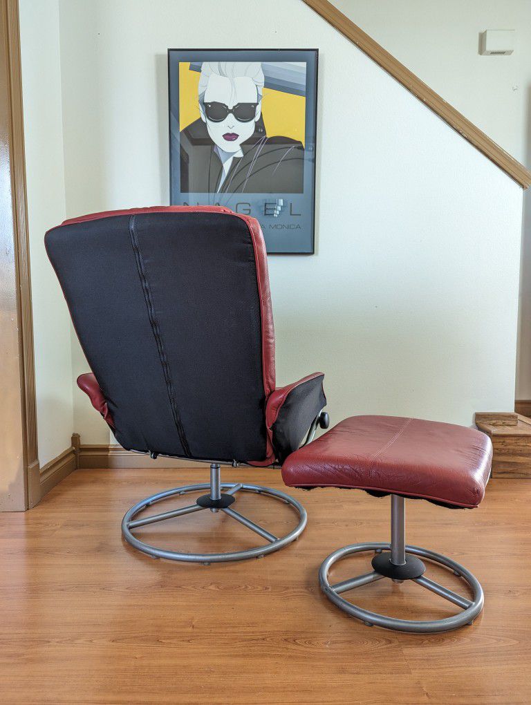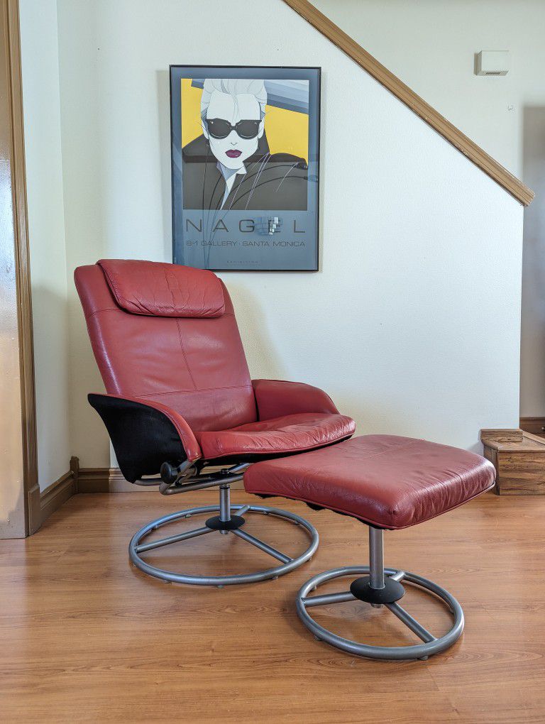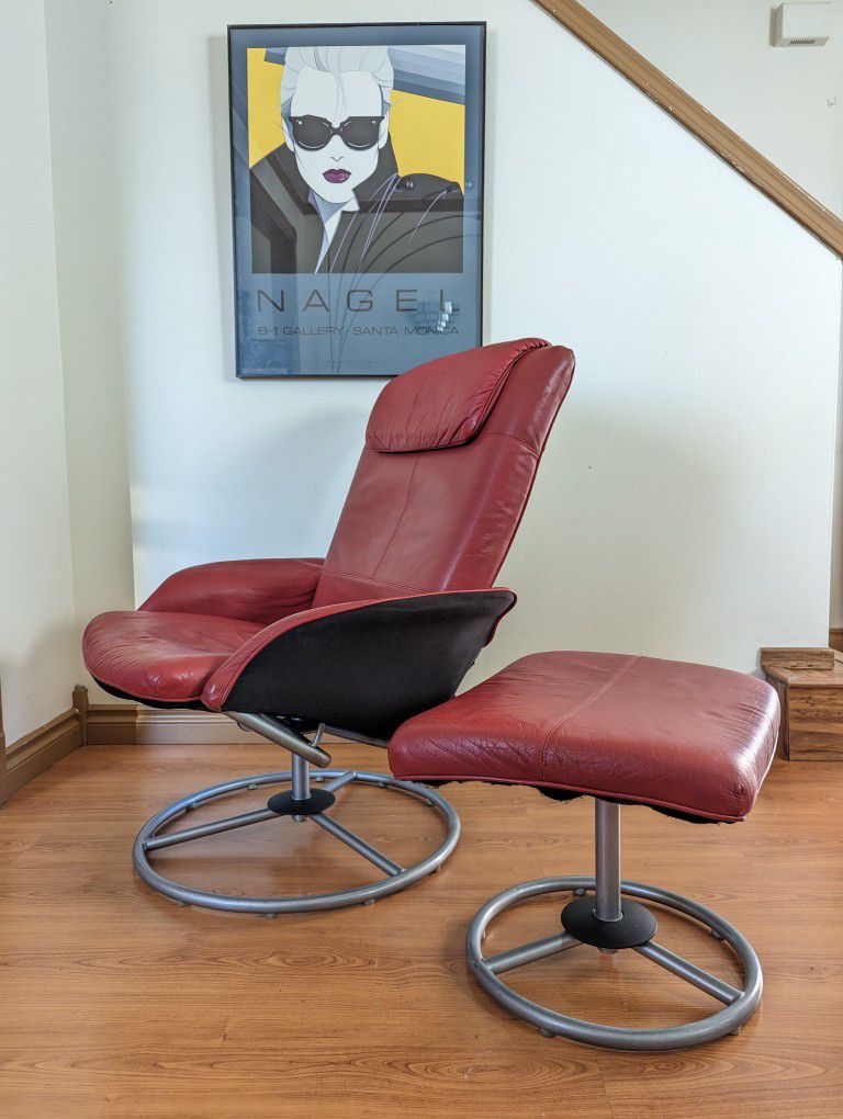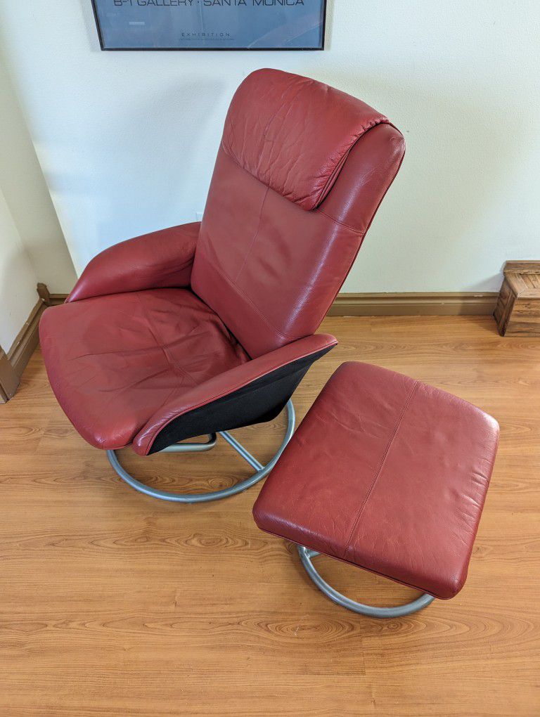 Red IKEA Stressless Style Leather Lounge Chair Recliner & Ottoman
