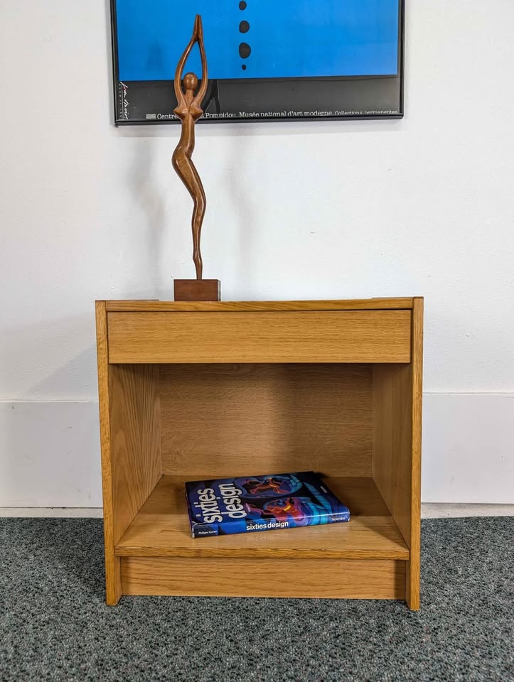 Nice little white oak nightstand to compliment any mid century Scandi / Japandi or Danish Modern decor. Additional photos available upon request. Free delivery within a 5 mile radius.