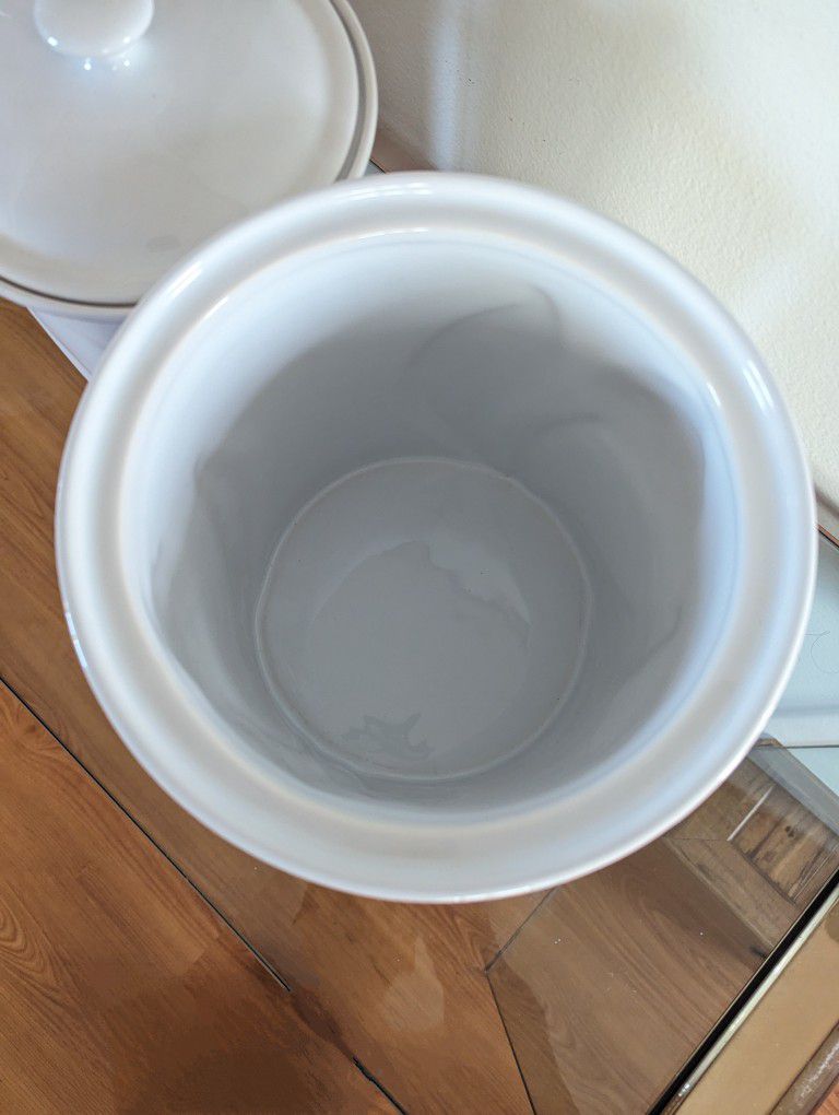 Beautiful set of 3 earthenware glazed ceramic tulip canisters with lids by designer Nicholas Angelakos for Colony Crafts. Hand crafted in Portugal! Sizes below.