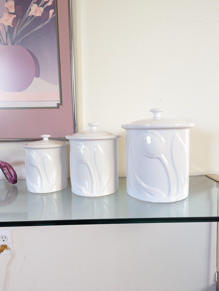 Set of 3 La Tulipe Canisters w/ Lids by Nicholas Angelakos for Colony Crafts