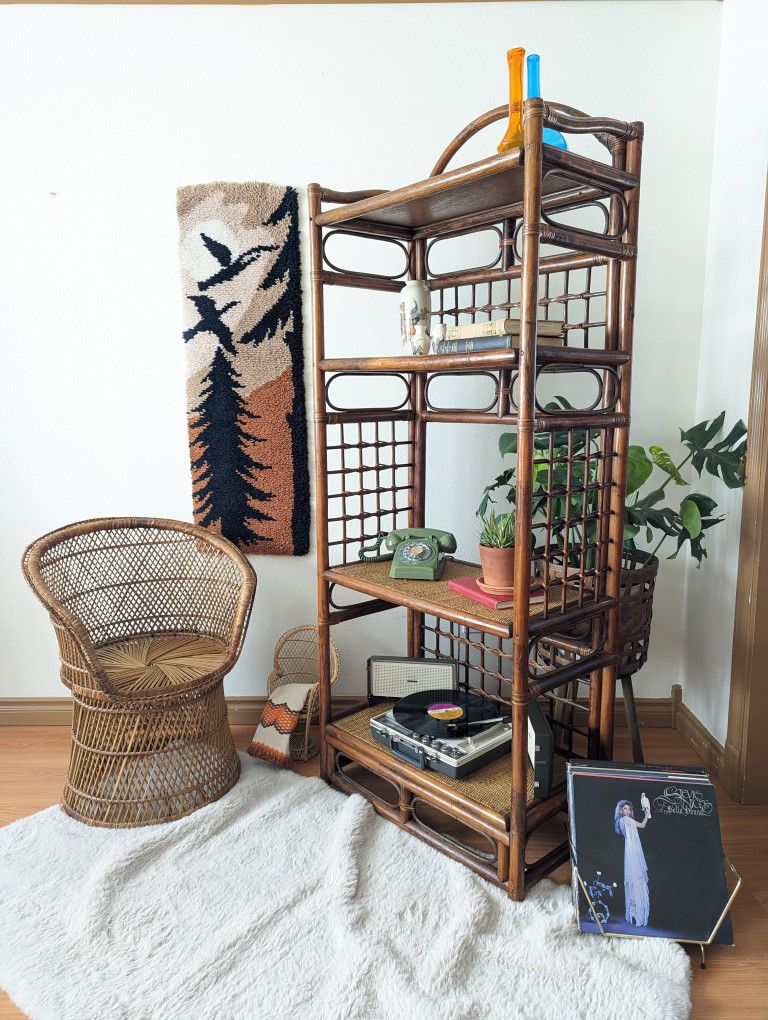 Vintage 1970's Boho Latch Hook Wall Art / Flying Birds & Pine Trees
