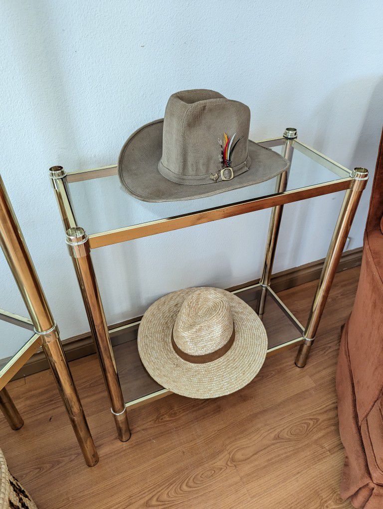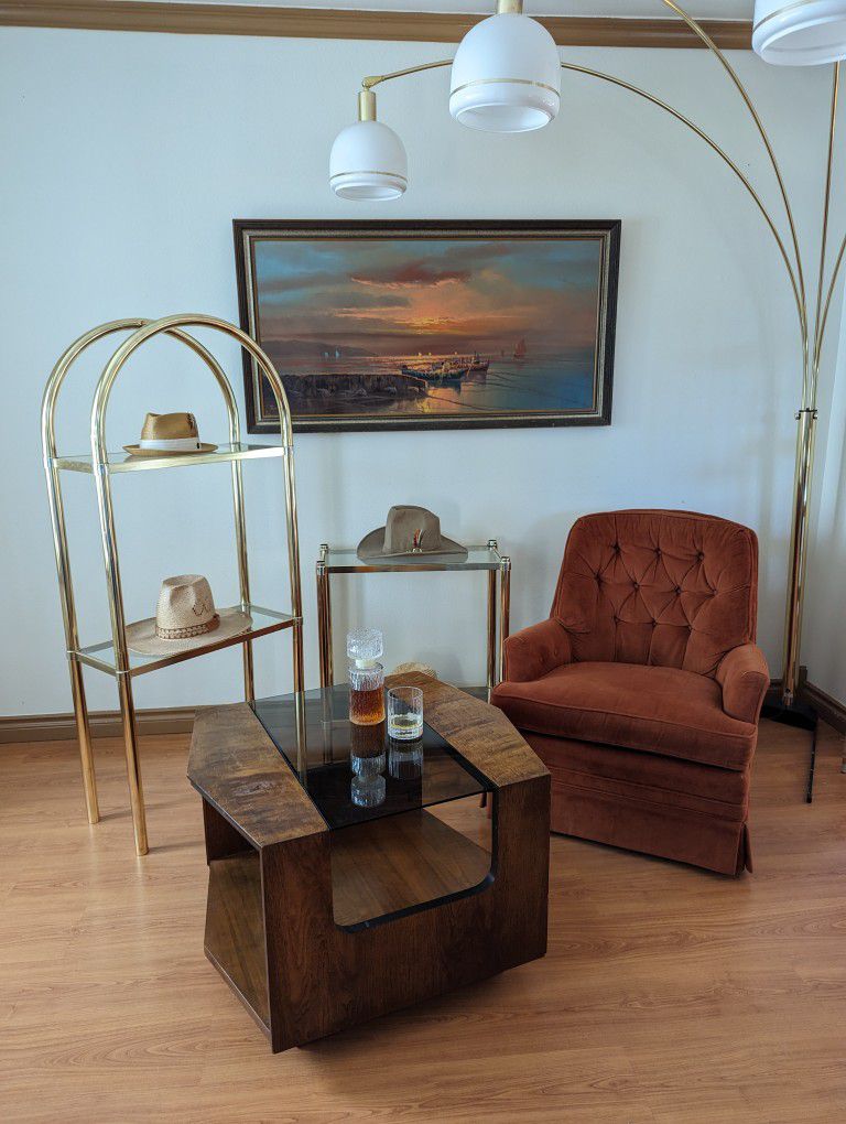 Beautiful mid century brass and glass etagere in excellent condition all around.