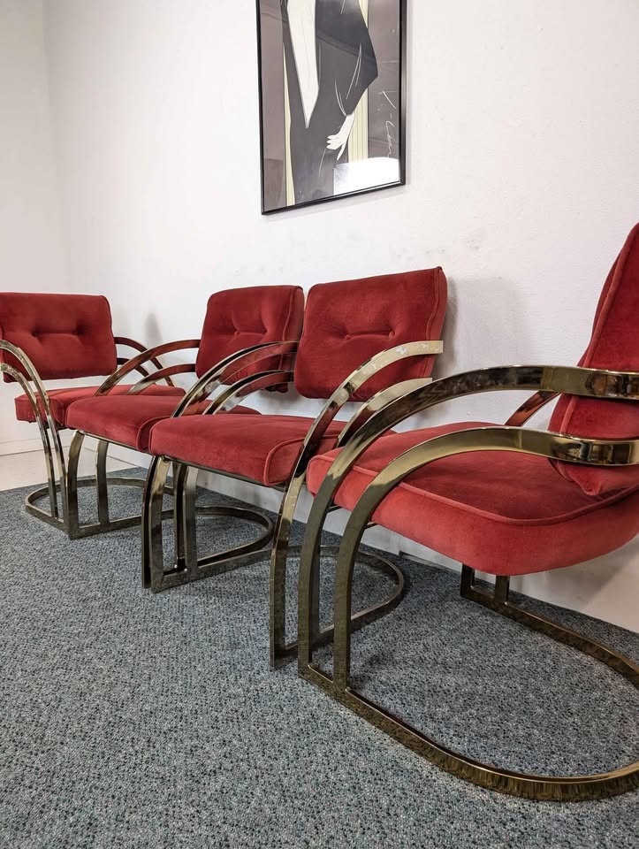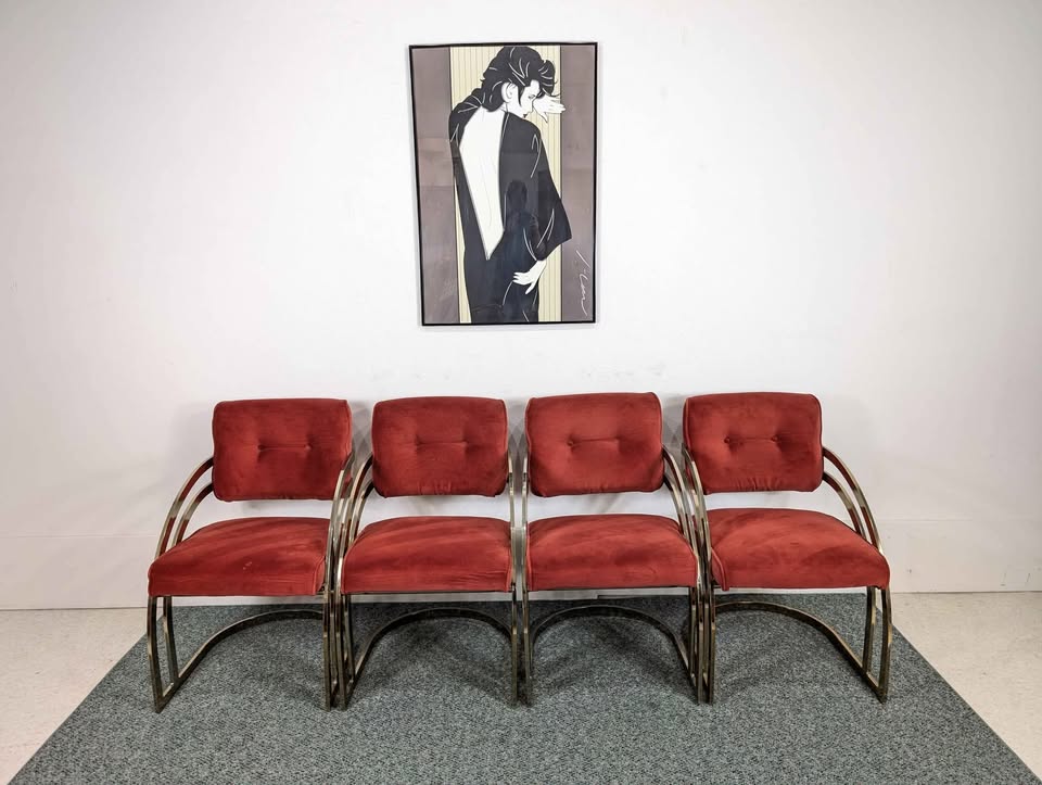 Vintage Cranberry Velvet, Brass & Smoked Glass Dining Table Set by Cal Style