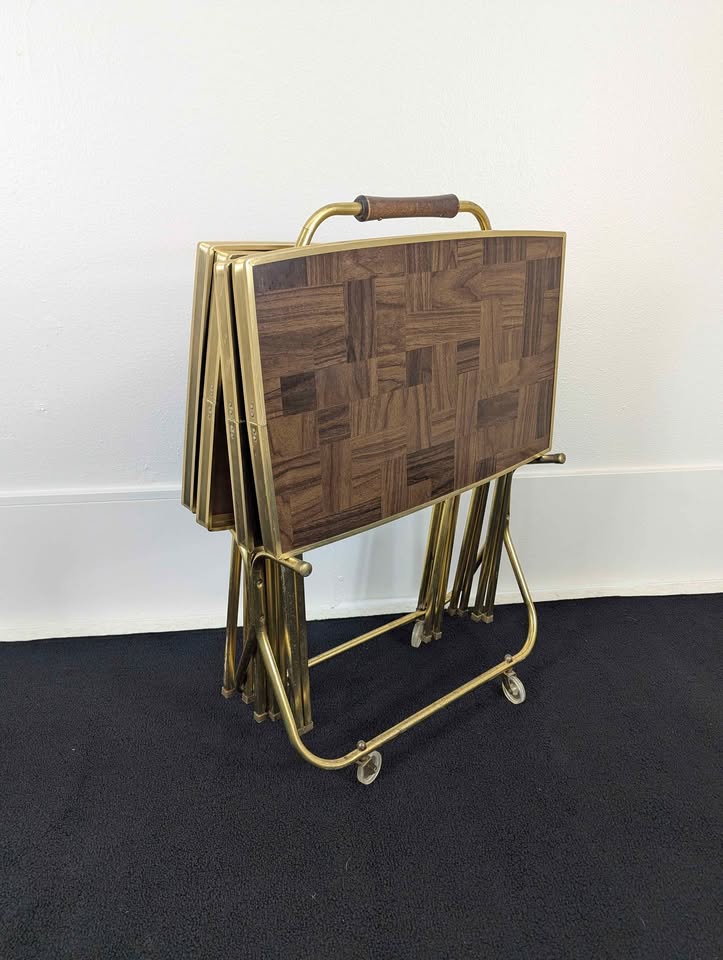 Vintage MCM TV Trays with Rolling stand by Cal Dak