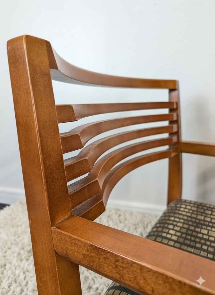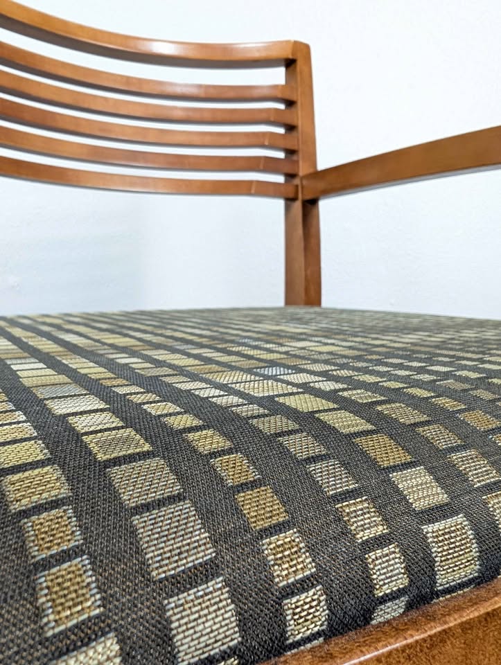 We have 6 Knoll Studio Ricchio armchairs designed by Joseph and Linda Ricchio. Selling in pairs for $295. They feature solid wood frames and upholstered seats in patterned Knoll Textiles fabric. Made in 🇺🇸 USA! Come see them at our shop in South Tacoma!