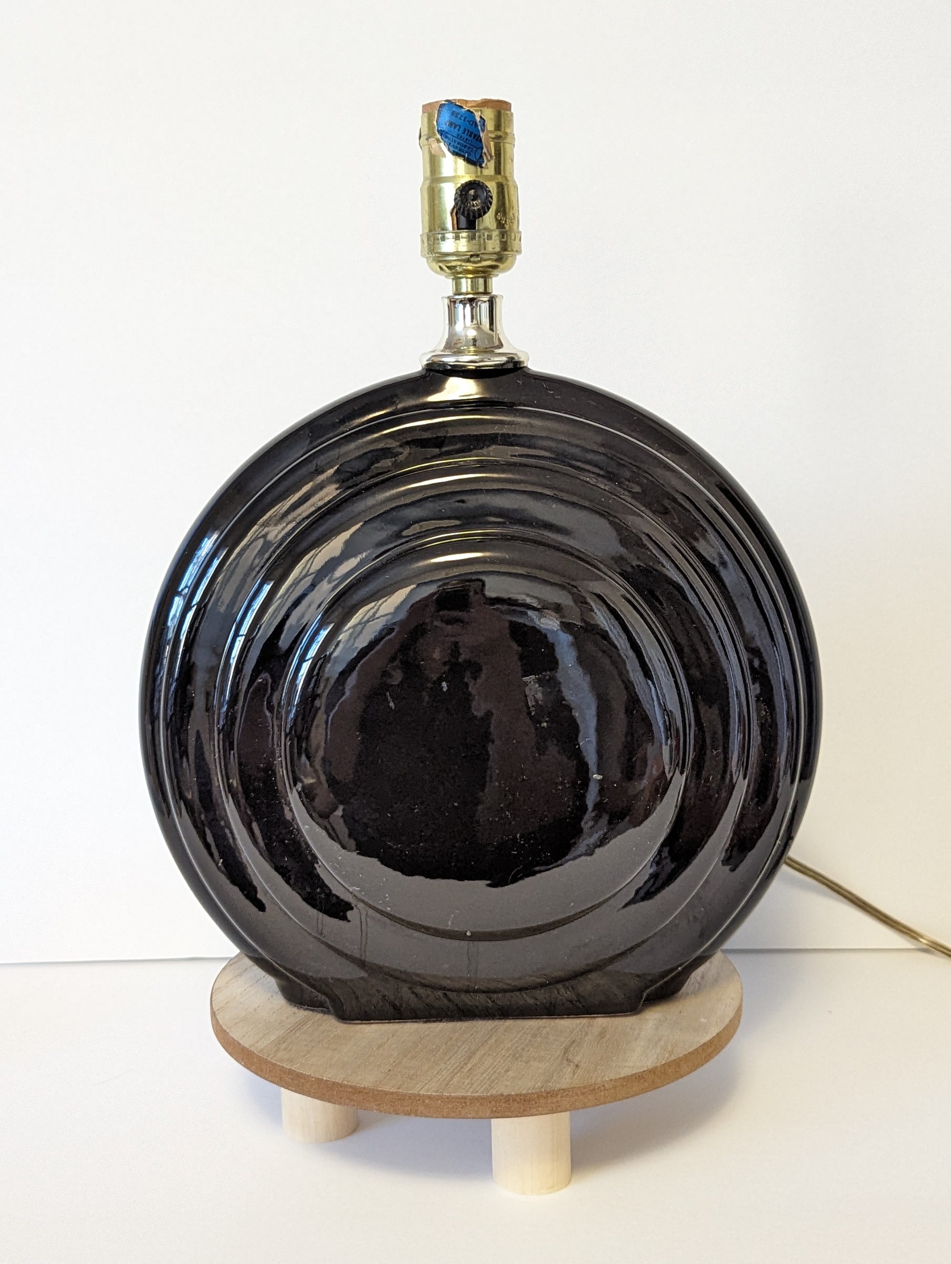 Vintage Postmodern Black Lamp Glossy Ceramic Circle Round Wave No Shade
