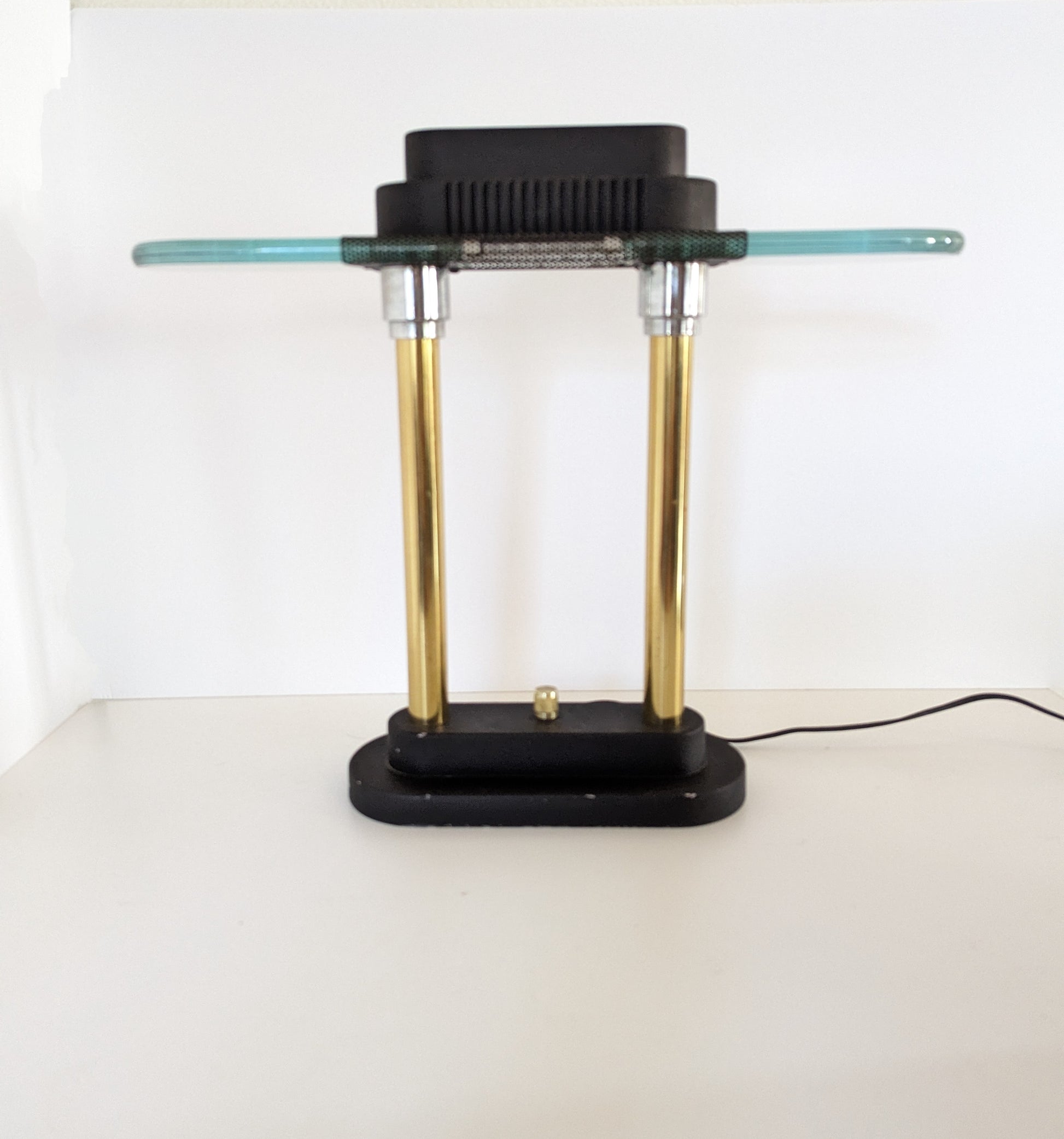 Vintage Postmodern Robert Sonneman Style Halogen Banker Desk Lamp Memphis Style