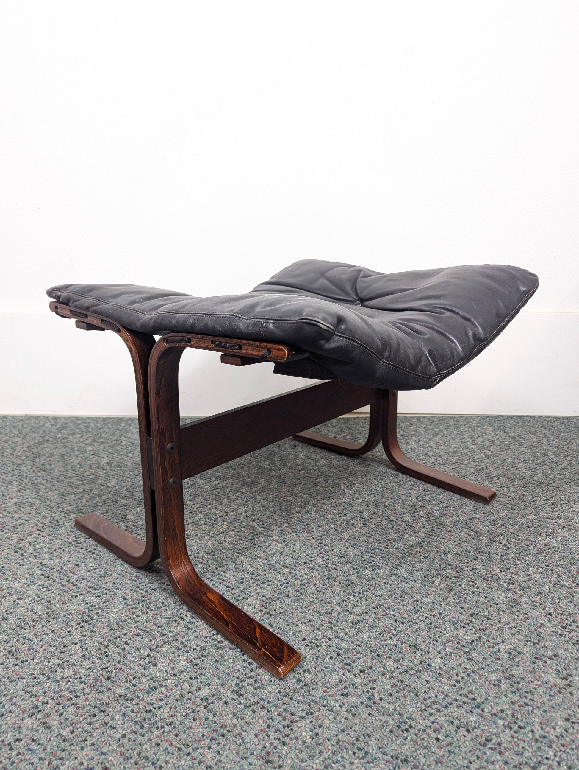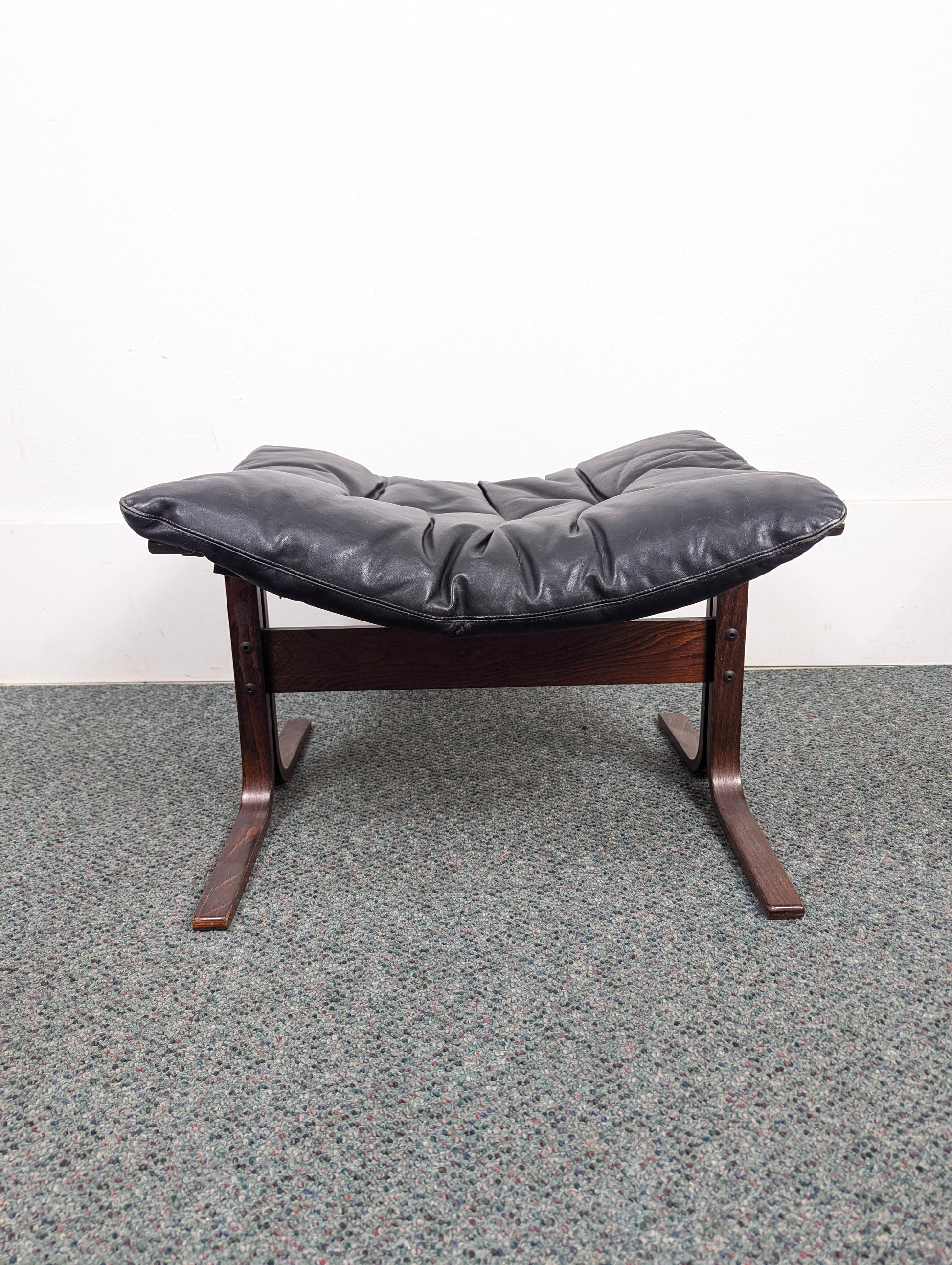 Vintage Westnofa Siesta Black Leather Ottoman Footstool