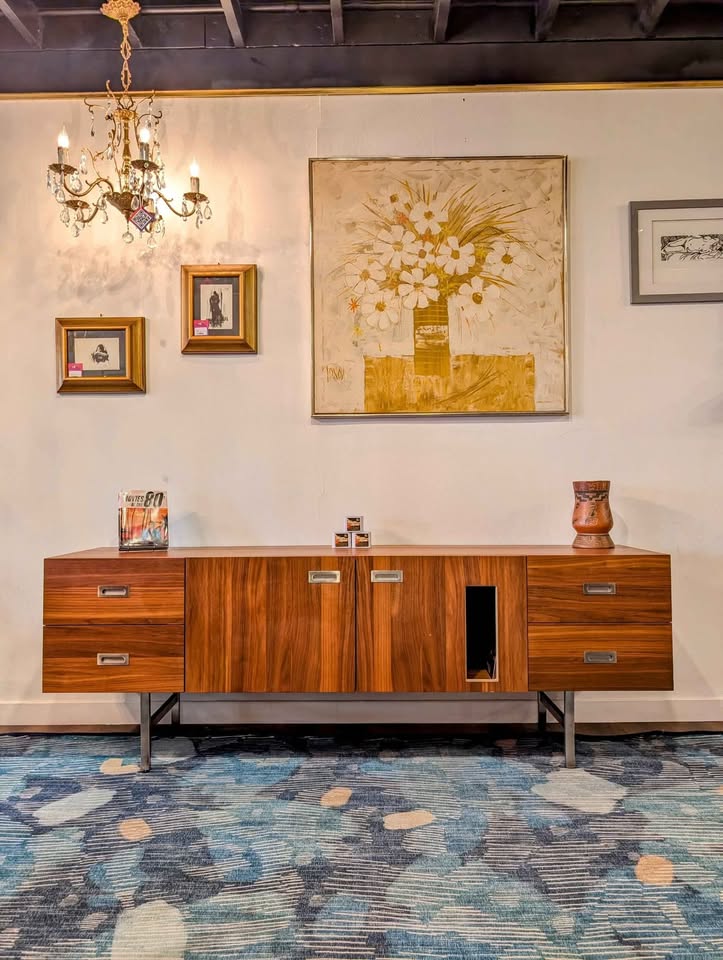 Walnut & Steel Media Credenza & Vinyl Record Storage